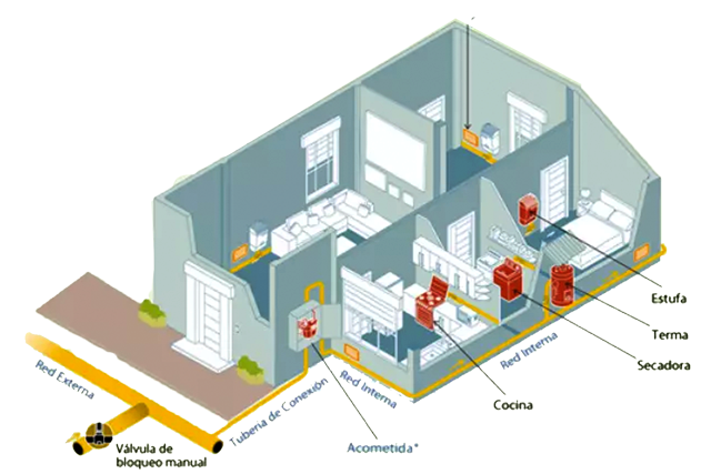 La construcción de instalaciones internas de gas natural implica la instalación de tuberías, válvulas y conexiones necesarias para llevar el gas desde la red de distribución hasta los puntos de consumo. Nos aseguramos de utilizar materiales de alta calidad y seguir los procedimientos adecuados para garantizar la integridad del sistema.